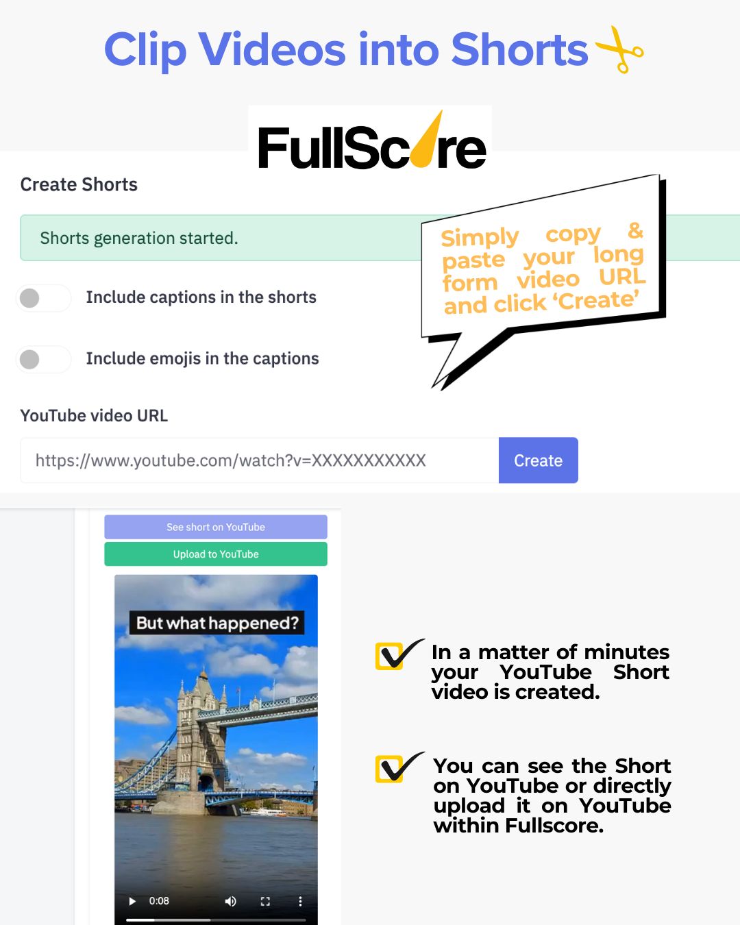 New FullScore.AI Feature: Turn Your Long-Form Videos into Viral Shorts Instantly.