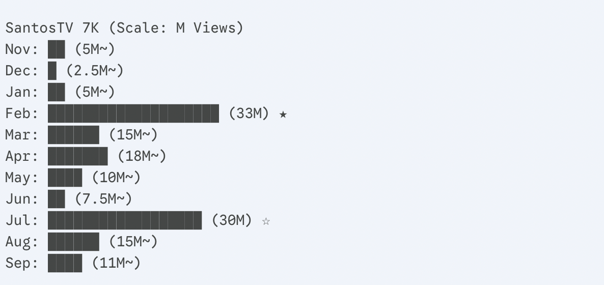 SantosTV had a second massive spike in July (☆), likely corresponding to another key period in the Brazilian football calendar.